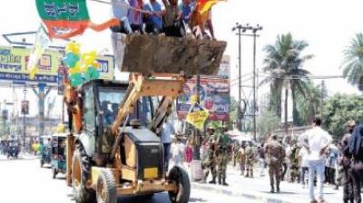 BJP उम्मीदवार का अलग अंदाज, बुलडोजर के साथ किया नामांकन