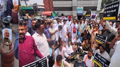सिलेंडर कीमतों को लेकर दुर्ग में कांग्रेस का हल्ला बोल