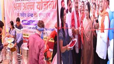 श्रमिकों के लिए तीसरे श्रमिक अन्न केंद्र का उद्घाटन, विधायक-महापौर ने श्रमिकों के साथ खाया खाना, थाली मात्र 5 रुपए म होगी उपलब्ध