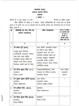 वहीं, अशोकनगर कलेक्टर सुभाष कुमार द्विवेदी को हटा कर सामान्य प्रशासन विभाग में अपर सचिव पदस्थ किया गया है। वहीं, कलेक्टर हरदा आदित्य सिंह को स्थानांतरित कर कलेक्टर अशोकनगर बनाया गया है। विदिशा कलेक्टर रोशन सिंह को उज्जैन कलेक्टर और भोपाल अपर कलेक्टर सिद्धार्थ जैन को कलेक्टर हरदा पदस्थ किया गया है।