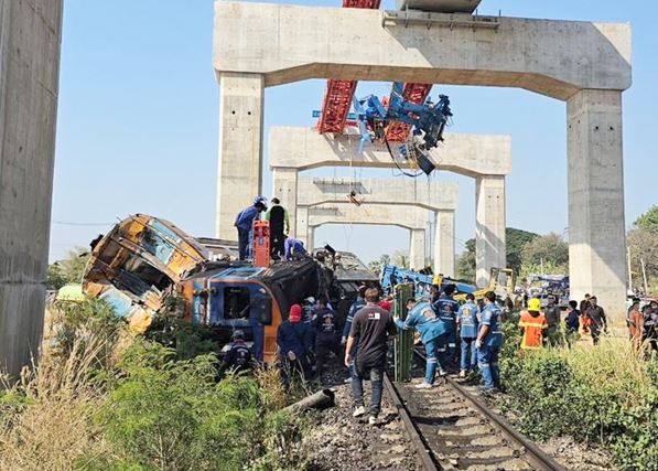 थाईलैंड में भीषण रेल हादसा: हाई-स्पीड प्रोजेक्ट की क्रेन ट्रेन पर गिरी, 22 यात्रियों की मौत