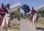 देवास में जुगाड़ का कमाल, घोड़े पर बैठकर ऑफिस पहुंचा बैंक कर्मी